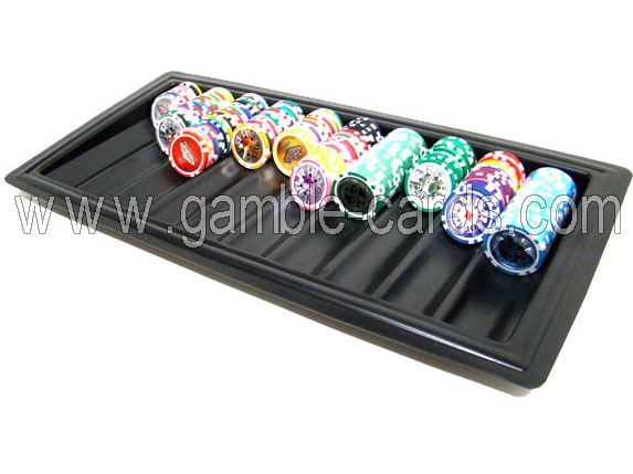 Línea de forma meseta 450 de chip tiene el chip, que está hecho de plástico ABS de espesor. Un montón de espacio para un máximo de 450 grandes fichas de casino en la bandeja robusta fichas compuestas ABS.