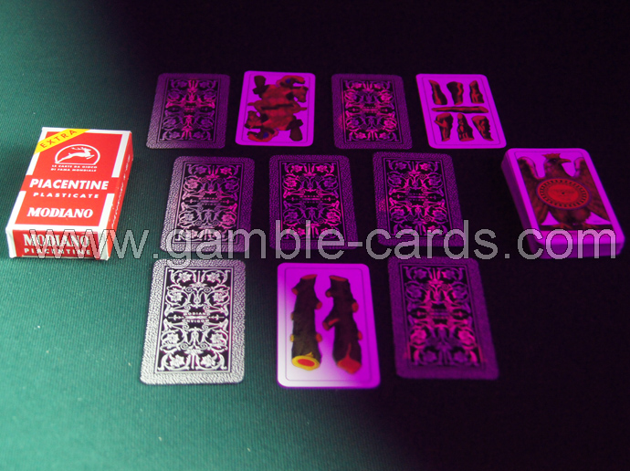 Modiano engalana con marcadores luminiscentes están especialmente diseñados para un rendimiento impresionante! Modiano tarjetas son 100% de plástico jugando a las cartas a menudo duran hasta 50 a 100 veces más que el papel en base o recubiertos de plástico naipes. 100% tarjetas de plástico son lavables, engarzado y resistente a la decoloración, resistente al agua y extremadamente durable.